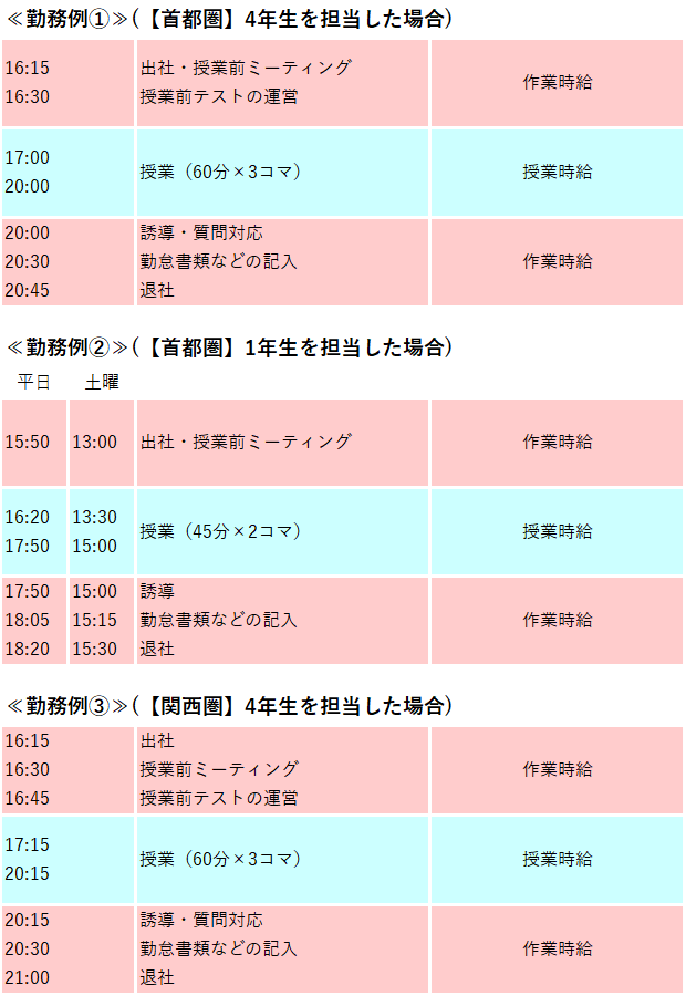 ※土曜日は一部校舎では15:30〜18:00の勤務あり